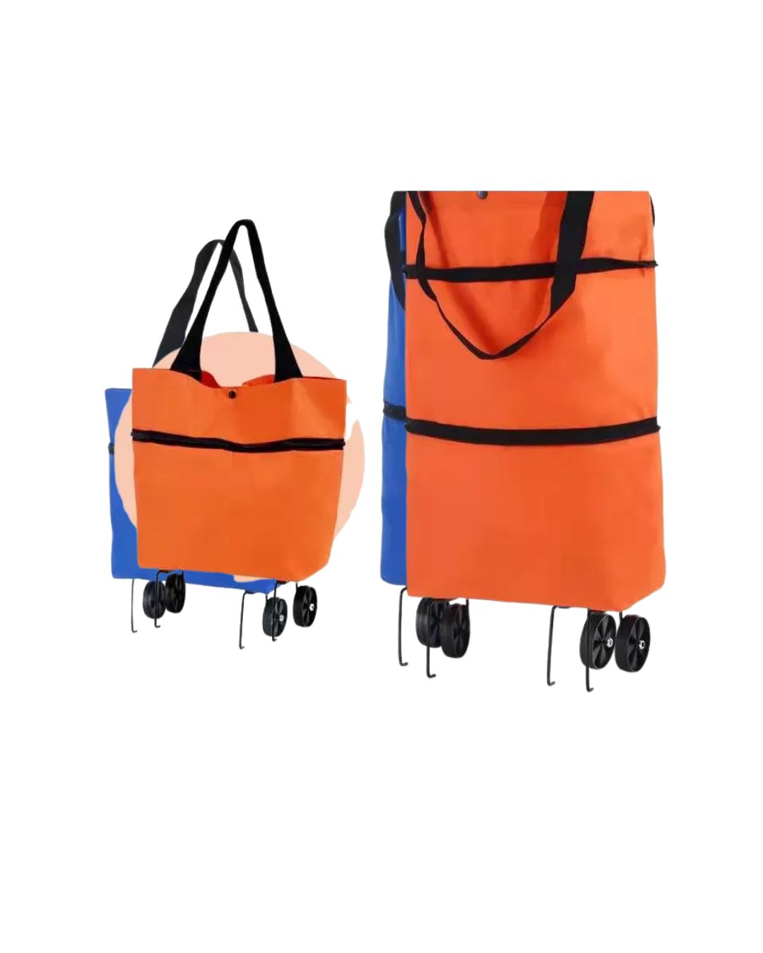 عربة تسوّق فولدي برو خفيفة وقابلة للطي، مزوّدة بعجلات متينة وحقيبة واسعة لحمل الخضروات والمشتريات. مثالية للتسليم السريع، البيك أب المنزلي، والاستخدام اليومي كمقطورة صغيرة متعددة المهام.