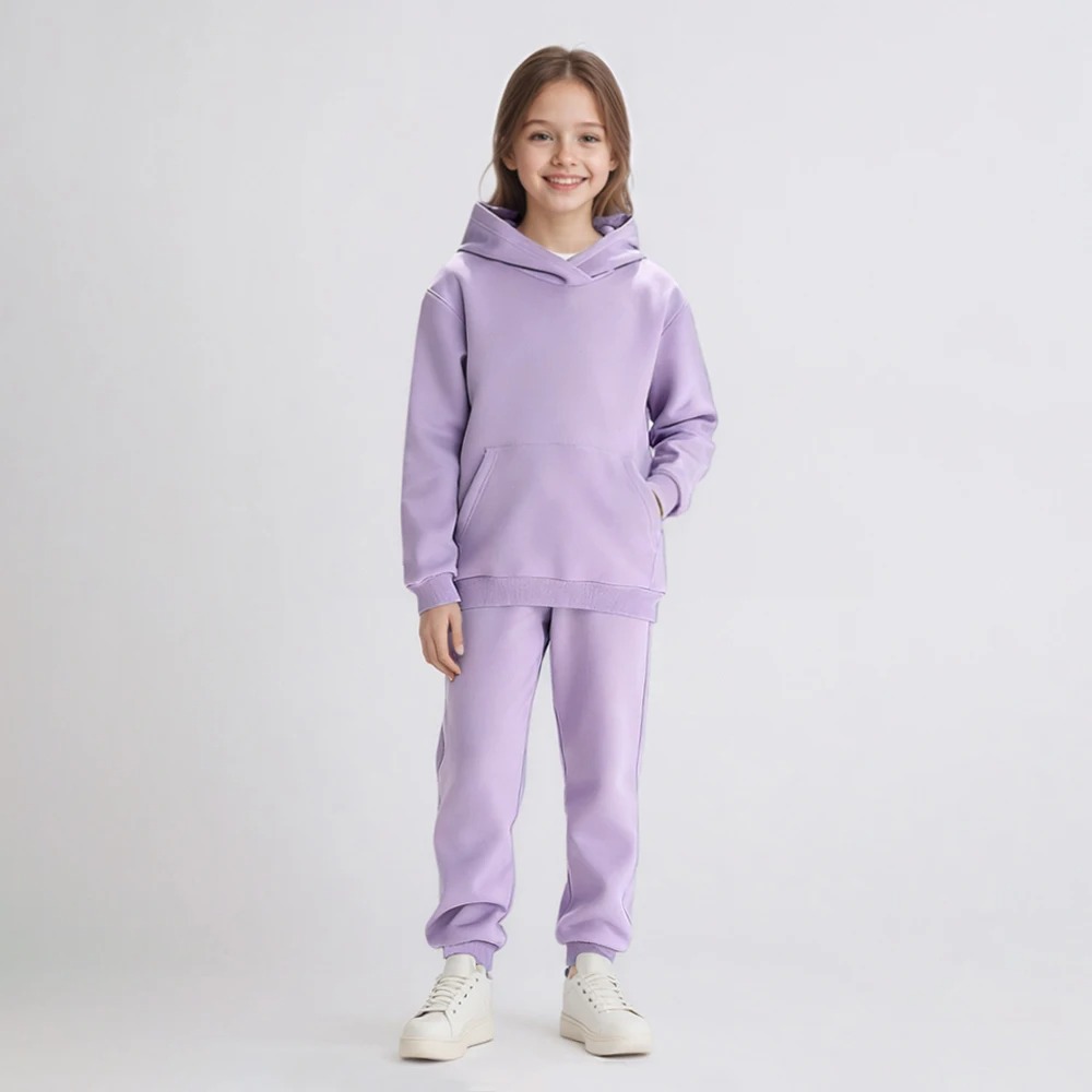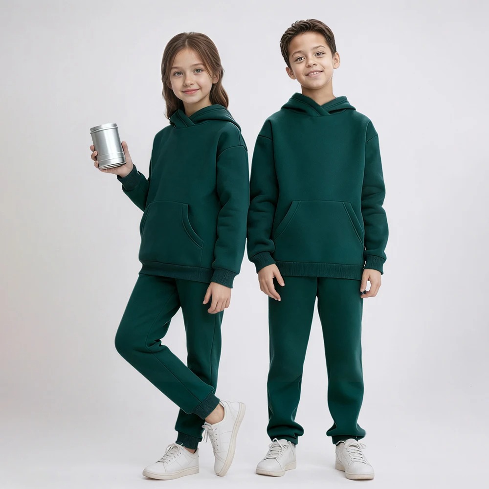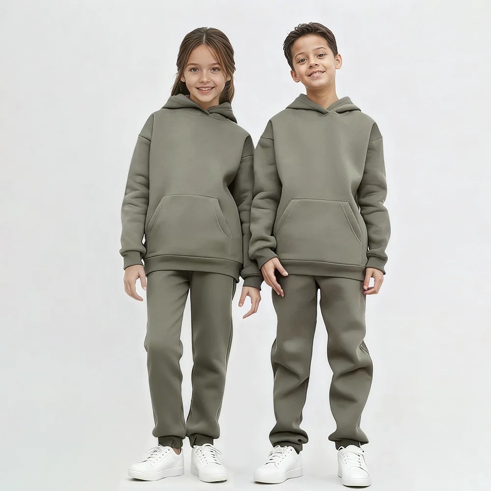 هودي سميك وبنطال بلون سادة للخريف والشتاء للأولاد والبنات