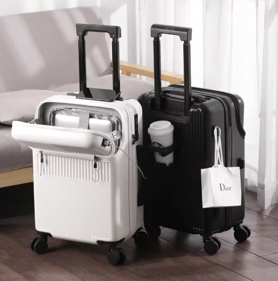 تم تزويدها بحامل أكواب مدمج يسهل عليك حمل قهوتك أثناء التنقل في المطارات أو ممرات الفنادق، إضافة إلى تصميم عصري يضمن سهولة الحركة بفضل العجلات الدوّارة 360 درجة والمقبض القابل للتعديل.