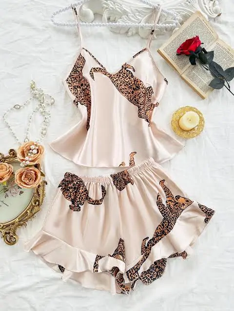 الصفحة الرئيسية اثاث طقم بيجامة بطبعة الفهد مكون من قطعتين،